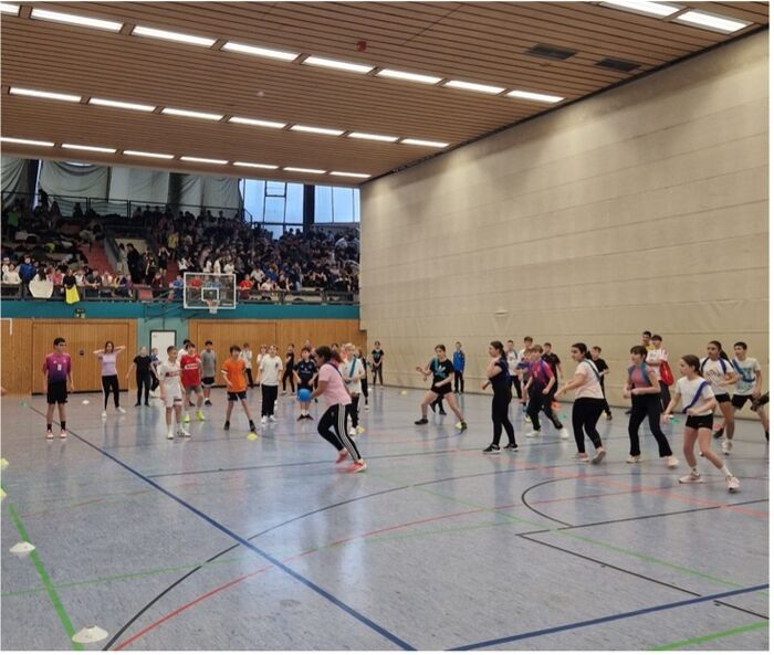 Bei Völkerball, Streetball und Volleyball traten die unterschiedlichen Stufen gegeneinander an. Mehrere Stunden lang wurde gegeneinander und miteinander gespielt, angefeuert oder zugeschaut. Auch unsere Schulsanitäter, die Catering AG und viele freiwillige Schiedsrichter trugen zum Gelingen des Turniers bei. Ein großes Dankeschön nochmal dafür.